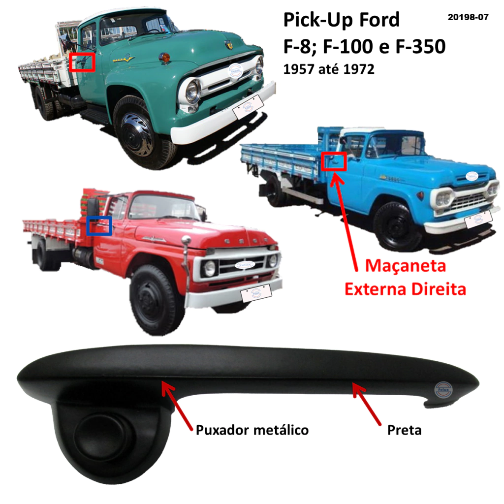 Maçaneta Externa F-8 F-350 F-600 1957-1972 Direita Preta