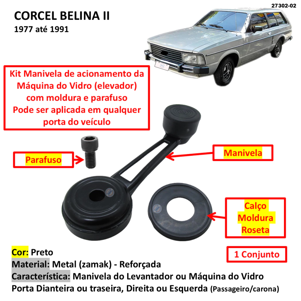 Nomenclatura Equivalente: Alavanca de movimentar o Vidro, Manivela Da Máquina Do Vidro, Manivela reguladora de levantar ou elevar do vidro.