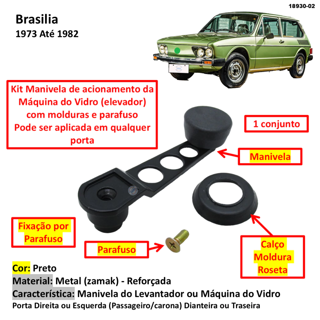 Início>Manivela>Manivela do Vidro completa Brasilia preta Parafuso Esporte