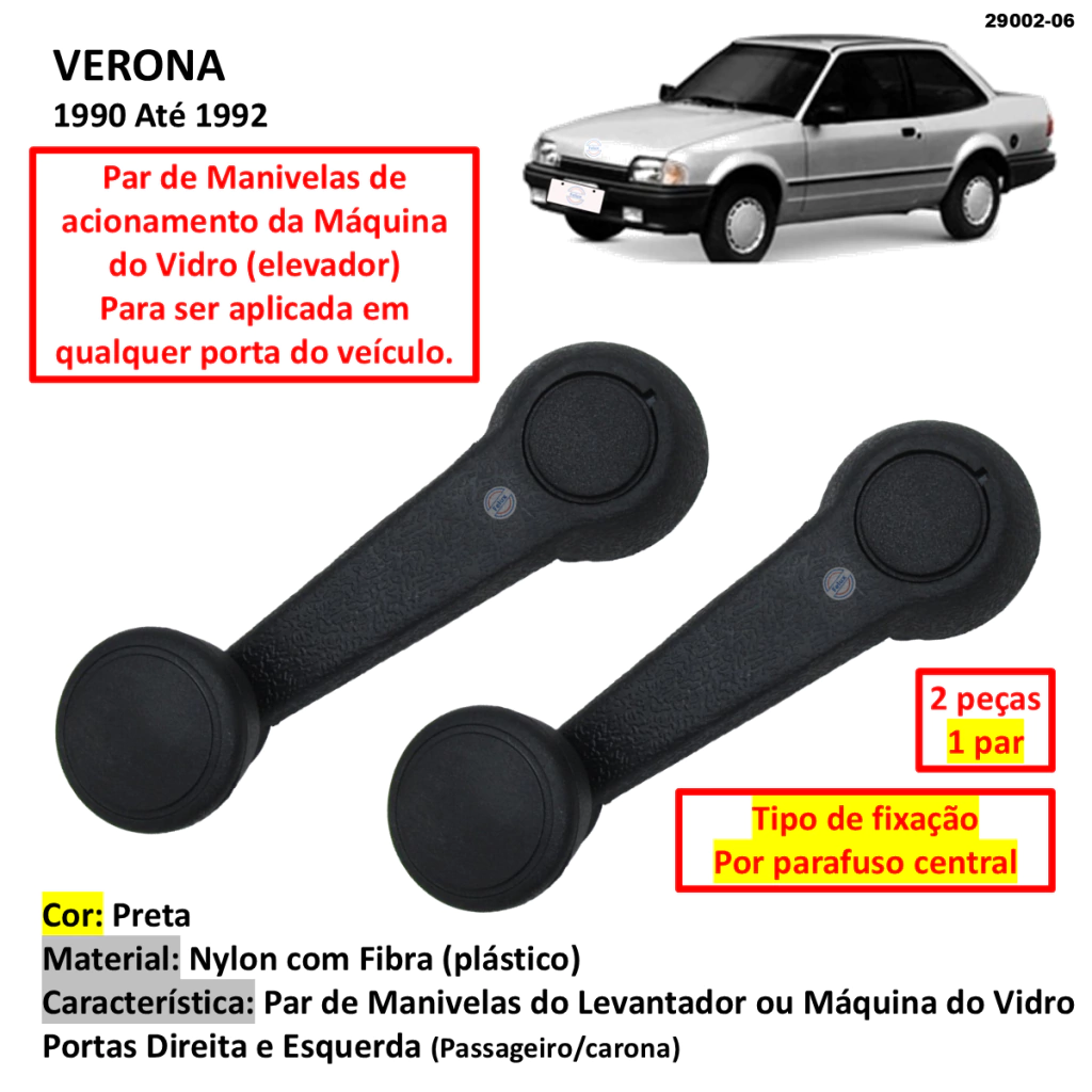 Produto: Par Manivelas Da Máquina Do Vidro Cor: Preta Material: Nylon com fibra Característica: 16 Estrias - Fina Lado de Aplicação: Esquerdo (motorista) e Direita (lado passageiro / carona)